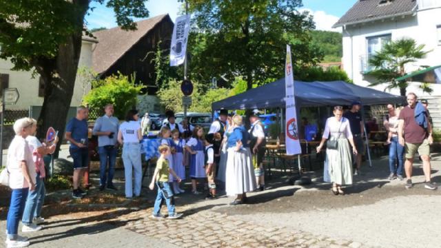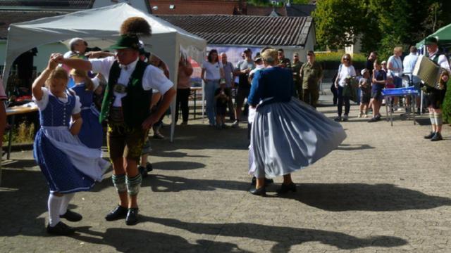 Obwohl unser Verein eigentlich ein Verein aus der Kernstadt Heppenheim ist, aber sein Probenlokal im Bürgerhaus Kirschhausen hat, konnten wir uns ebenfalls an dieser Informationsveranstaltung beteiligen. Ein kleiner Infostand mit verschiedenen Flyern zum Verein, zur Jugendarbeit und zum bevorstehenden Sänger- und Musikantentreffen mit Kathreintanz, wurde aufgebaut. Als kleiner Höhepunkt des Dorftreffs waren die beiden Auftritte unserer Kindergruppe, die mit musikalischer Begleitung stolz in die Aktionsmeile auf dem Hof des Bürgerhauses einmarschierten. Beim ersten Auftritt wurde das Bauernmadl und die Kuckuckspolka (Hackespitze 123) aufgeführt. Beim zweiten Auftritt unserer Trachtenkinder zeigten sie den Siebenschritt und die Kreuzpolka. Das anwesende Publikum war begeistert von unseren Nachwuchstrachtlern und spendete regen Applaus. Die beigefügten Bilder zeigen einige Eindrücke des ersten Dorftreffs Kirschhausen. Diese Veranstaltung war sicherlich keine Eintagsfliege und wird mit Sicherheit eine Fortsetzung erfahren.