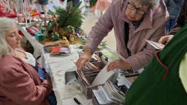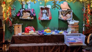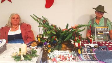 Zusätzlich zu Kaiserschmarrn und Rauhnachtlikör wurden auch handwerklich hergestellte Produkte gezeigt. Die beiden aktiven Trachtendirndl Marion Kuhn und Jutta Weber, zeigten selbst hergestellte Ketten, Trachtenanhänger, oder Ohrstecker, sowie wunderschöne Weihnachtskarten. Die anhängende Bilderreihe zeigt die beiden an Ihrem Stand.