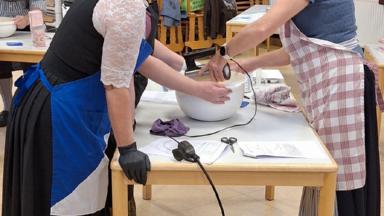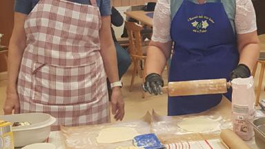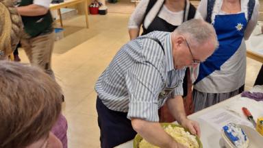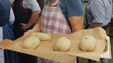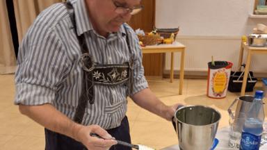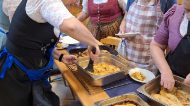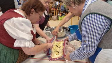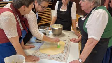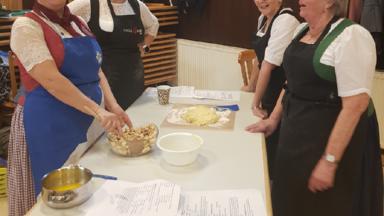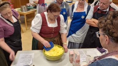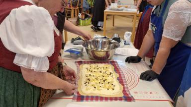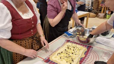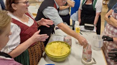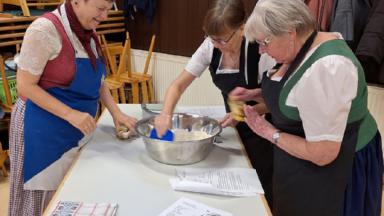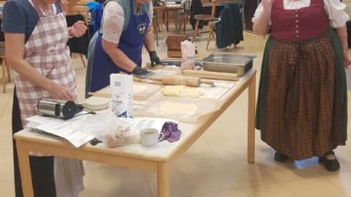 Unter fachkundiger Anleitung von Gisela Hausner vom Sachausschuss Mundart, Brauchtum, Laienspiel, wurden verschiedene traditionelle Backwaren zubereitet – von duftenden Bauernbroten, zum Teil mit verschiedenen Gewürzen, über süße Auszogne bis hin zu feinem Kartoffel- und Apfelstrudel und leckeren Rahmfleckerl. Die anwesenden Teilnehmer konnten hier Wissenswertes über die Herkunft und Bedeutung der Rezepte, sowie über die Rolle des Backens im dörflichen Gemeinschaftsleben vergangener Zeiten erfahren.