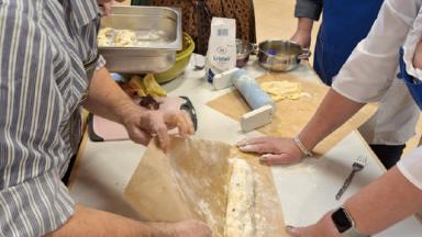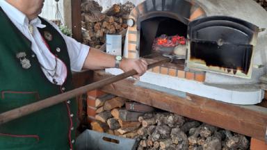 Die anwesenden Kursteilnehmer, konnten nicht nur zuschauen, sondern auch selbst mit Hand anlegen, wie z.B. die verschiedensten Strudelteige herstellen, Brotteig ansetzen, oder Brote in den vorgeheizten Steinbackofen einschießen usw. Die Teilnehmerinnen und Teilnehmer hatten sichtlich Freude daran, traditionelle Backtechniken auszuprobieren. Der köstliche Duft frisch gebackener Spezialitäten erfüllte die Edelweiß-Scheuer und lud anschließend zum Verkosten ein.
