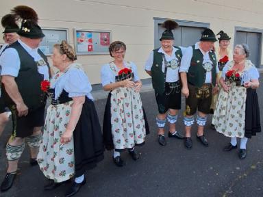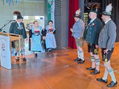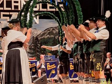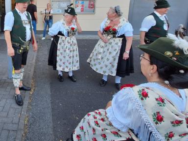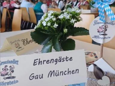 Gratulationen an den Festverein und vor Allem für den Rhein-Main-Gauverband wurden auch von Seiten des Patengaues „München und Umgebung“, durch deren Gauvorstand Markus Hochlahner, stellvertretend auch für den Bayerischen Trachtenverband, überbracht. Von Seiten des Isargaues - Patengau des Trachtenverband Unterfranken - sprach der zweite Gauvorstand Anderl Schwaiger in Form eines Acapella vorgetragenen Liedes seine Gratulation aus.