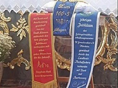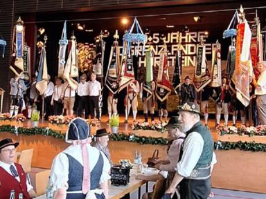Zwischen den Darbietungen der Trachtenvereine nahm der Festverein D`Grenzlandler Hörstein, noch interne Vereinsehrungen für langjährige Mitgliedschaften vor. Der Bürgermeister Stephan Moll bat um Einträge und Unterschriften in das Goldene Buch der Stadt Alzenau.