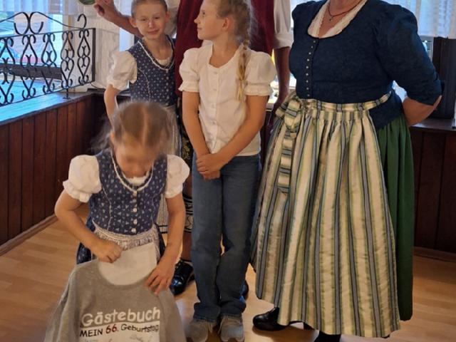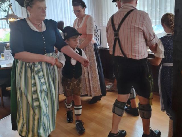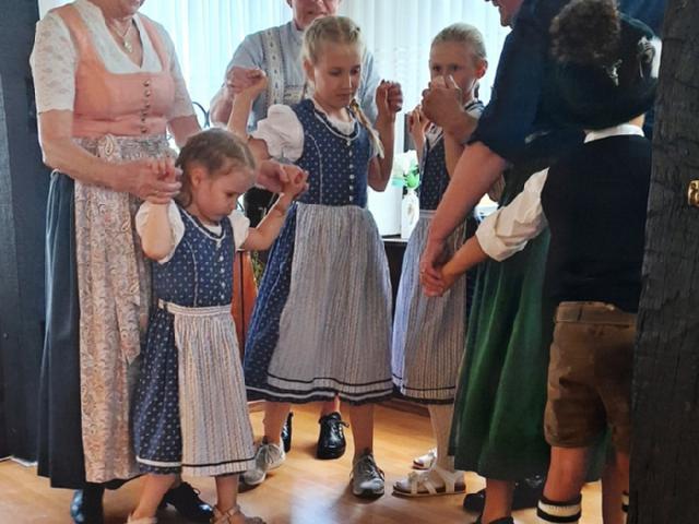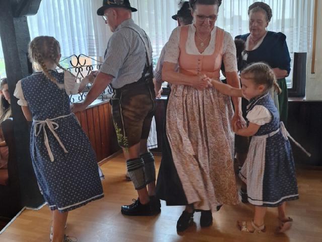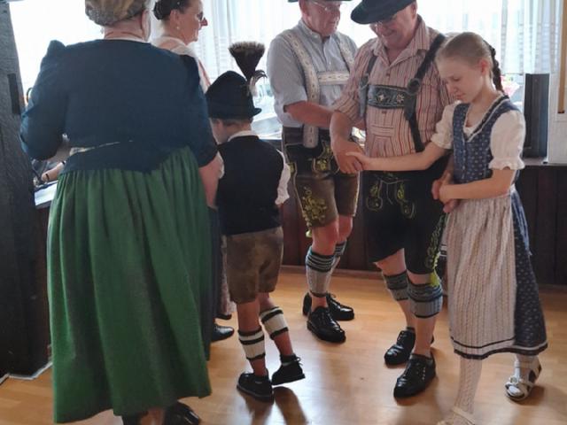 Zu Beginn der Geburtstagsfeier marschierten unsere kleinen Trachtler, jeweils mit einem Erwachsenen, mit einem zünftigen Einmarsch auf die Tanzfläche. Sie zeigten Ihrem zweiten Vorstand zwei ihrer erlernten Trachtentänze. Getanzt wurde das Bauernmadl und Hackespitze. Damit machten Sie Ihm Ihre Aufwartung, zugleich als Gratulation zu seinem Geburtstag.