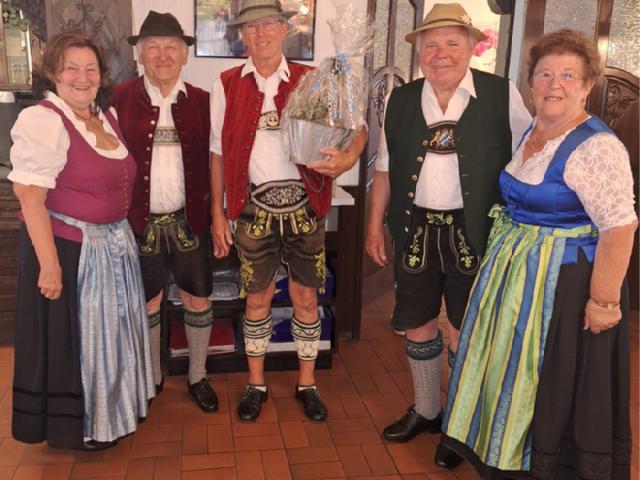 Am 02. Juli konnte unser 2. Vorstand Paul Dörsam seinen 66. Geburtstag im Kreise seiner Familie feiern. Paul lud deshalb zur offiziellen großen Geburtstagsfeier am Samstag, den 05. Juli in das Gasthaus „Zur alten Mühle“ in Heppenheim-Kirschhausen ein. Geladene Gäste waren neben seiner Familie und Freunden, auch ehemalige Arbeitskollegen, die beiden Vorstände unseres Patenvereins „Almfrieden Aubing, jeweils mit Gattin, den Vorstand unseres Brudervereins „Die Burgfreunde Pirmasens“ mit Gattin, die Aktiven und die Kindergruppe des Vereins.