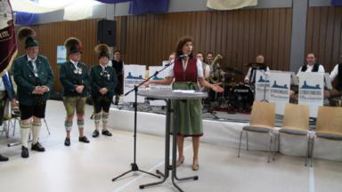 Für den Bayerischen Trachtenverband gratuliere Landesschriftführerin Hildegard Hoffmann mit den Worten: „Ich gratuliere Euch, dass Ihr wieder a Gaufest feiert! Ihr kommt‘s zsam, ihr tauscht‘s Euch aus – gemeinsam kann man auch auftretende Probleme lösen. Natürlich is so a Gaufest a Arbeit, aber ma kommt zsam, es rührt sich was – und die Leute kommen da hin, wo sich was rührt. Zeigts Euch auch in der Öffentlichkeit, des is wichtig und zieht Leute an. Ich schließe mich meinen Vorrednern und Herrn Pfarrer Meurer an: Miteinander ist Füreinander und ist Zusammenhalt. Wir als Bayerischer Trachtenverband freuen uns, dass es Euch als Rhein-Main-Gau gibt. Dank an Wolfgang für‘s Übernehmen des Amtes. Ich appelliere aber auch an Euch alle: übernehmt‘s a Ehrenamt. Ein Ehrenamt ist nicht nur Bürde und Arbeit, sondern macht auch unglaublich viel Freude!“